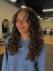 Hi, I’m Chloe! I’m 19 and super excited to be starting my journey in the hair industry. I started cosmetology school a month after graduating highschool and have loved every second of it! I love how creative hair can be—how no hair ever looks the same and everyone is unique! When I’m not behind the chair, I’m probably out with friends, looking for the next best matcha spot, or spending time with my dog, Hazel. I’m also really into meeting new people, fashion, and all things curly hair!